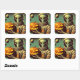 Space Alien and Jack-o'-lantern Retro Illustration Square Sticker