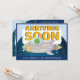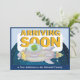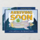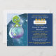 Adorable baby shower invitation announces an upcoming arrival! The front holds a rocket ship with a small alien baby at the controls. Update the bottom line of text that currently reads "a new addition to the (name) family". The reverse holds another design with our small alien baby sitting atop a planet with stars, coupled with all the particulars of your upcoming baby shower.