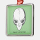 Crafted from high-quality metal, this ornament offers a sleek, polished finish that enhances its bold design. The alien head illustration is both striking and whimsical, capturing the classic image of extraterrestrial life with a festive twist. The "Season's Greetings" text adds a layer of holiday joy, making this ornament a versatile addition to your collection. Whether hung on a traditional evergreen tree, displayed as part of a sci-fi-themed holiday setup, or used as a standout piece in a modern, minimalist decor scheme, this ornament is sure to draw attention and admiration. Its durable construction ensures it will remain a cherished part of your holiday decor for years to come, providing an enduring reminder of the season's magic and the infinite possibilities of the cosmos.