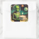 Space Alien with Birthday Cake UFO Flying Saucer Square Sticker