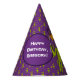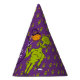 Throw an out-of-this-world birthday party with these custom party hats featuring an illustration of a lime green space alien holding a pair of planet-shaped balloons.
