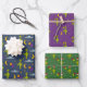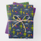 Add a sci-fi themed touch to gifts for any occasion with this out-of-this-world wrapping paper assortment. It includes one sheet of purple patterned paper featuring aliens holding balloons; one navy blue sheet of aliens with flying saucers, moons and planets; and one green sheet of festive aliens in Santa Claus hats.