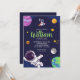 Get ready for an outer space kids' birthday party! The invitations showcase a sky full of stars, with planets scattered around the edges. You'll also find a rocket ship and an astronaut, making it a cool modern birthday theme, all set in a cool birthday template that you can make your own easily.