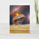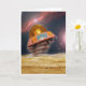 Greeting card with space scene showing retro toy flying saucer.