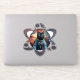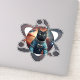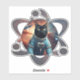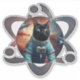 A playful and quirky sticker featuring a black cat dressed as an astronaut, floating in space surrounded by aliens and a glowing atom. Perfect for science fiction fans and cat lovers alike.