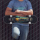 The Space Cruiser Skateboard is a unique and eye-catching skateboard that features a spaceship design on the bottom. The design is a custom graphic that depicts a futuristic spacecraft with sleek lines and vibrant colours, making it stand out from other skateboards. The skateboard is made with high-quality materials and has a durable deck that can withstand frequent use. Whether you're cruising around town or performing tricks at the skate park, this skateboard is sure to turn heads and impress.