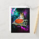 Space dj cat pizza postcard