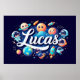 Beautiful wall art showcasing a magical space scene with adorable planets, astronauts, and celestial wonders featuring the name Lucas. Perfect for bedrooms, nurseries, or any space lover's room.