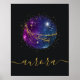 Custom personalised space art poster featuring colourful space galaxies and gold stars personalised with your name in script typography. Several sizes available. Available for print and instant download.
