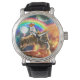 Space Galaxy Cat Riding Tiger on Pizza Watch