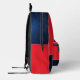 Stand out with this bold and modern personalised backpack. Featuring a striking red and navy geometric design with a starry night sky, this bag combines space age style with practicality. The backpack is designed for students and adventurers who seek a cool space themed boost in the style and function of their everyday gear. Ideal for school, sports, or travel, the bag can be personalised with a name on the front pocket for the finishing touch.