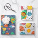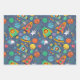 Space Hippo And Lion Planet Pattern wrapping paper sheets from Ricaso - a delightful fun wildlife in space paper set - featuring a lion, hippo and racoon in spaceman outfits with rocket ships and planets