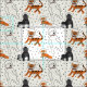 Space is pretty wild, especially when it's filled with some wild animals playing at being astronauts. This pattern features illustrations of a tiger, a fox, a gorilla and a polar bear wearing retro style space helmets set against a beige or ivory coloured background with black star graphics. Craft up your own out of this world gift with this cute fabric.