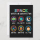 Playful space themed artwork made for curious kids and young students. Cute symbols like UFO, planet, moon, stars, rocket and alien help children explore space science and basic astronomy in a fun and friendly way.