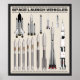 A fun classy poster for the rocket and space enthusiast! Features various artistic depictions of rocket designs (some based on real space rockets and some with artistic license). Not to scale, but several recognisable designs are included. Fully customisable to add names, quotes, mottoes, images, and more when customising. Enjoy!