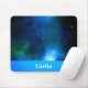 A custom mouse pad with a blue space background. Add your own name to this product by using the custom template.