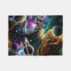 A beautifully detailed painting showing a colourful nebula with planets and shimmering stars.