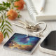 Space Nebula blue yellow Alcohol ink art Key Ring
