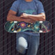 Take your skating to another dimension with our space and planet-themed skateboard design. Featuring mesmerising cosmic imagery, swirling galaxies, and distant planets, this design invites you to explore the wonders of the universe while you ride. Perfect for dreamers and adventurers who are fascinated by space, this celestial-inspired deck brings a sense of infinite possibility and exploration. With vivid colours and otherworldly visuals, this skateboard design is a true tribute to the beauty of the cosmos and the thrill of the ride.