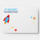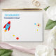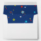 Outer space rocket invitation envelopes with return address on front and star galaxy envelope inside / envelope liner.