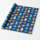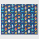 Space Rockets Planets Ufo Stars Blu Wrapping Paper