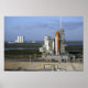 Space shuttle Atlantis atop the mobile launcher platform sits on the launch pad featured with Florida.