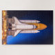 Space Shuttle Atlantis Poster features a photograph of Space Shuttle Atlantis, attached to its bright-orange external fuel tank and twin solid rocket boosters on Launch Pad 39A at NASA's Kennedy Space Centre in Florida At Night.