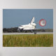 Space Shuttle Atlantis' drag chute is deployed as the spacecraft rolls towards wheels stop on runway 15 of the Shuttle Landing Facility at NASA's Kennedy Space Centre, concluding the 13-day STS-122 mission. Onboard are NASA astronauts Steve Frick, commander; Alan Poindexter, pilot; Leland Melvin, Rex Walheim, Stanley Love, Daniel Tani, and European Space Agency (ESA) astronaut Hans Schlegel, all mission specialists. Main gear touchdown was 9:07:10 a.m. (EST). Nose gear touchdown was 9:07:20 a.m. Wheel stop was at 9:08:08 a.m. Mission elapsed time was 12 days, 18 hours, 21 minutes and 44 seconds. During the mission, Atlantis' crew installed the new Columbus laboratory, leaving a larger space station and one with increased science capabilities. The Columbus Research Module adds nearly 1,000 cubic feet of habitable volume and affords room for 10 experiment racks, each an independent science lab.