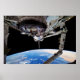 The Leonardo Multi-Purpose Logistics Module (MPLM) visible in space shuttle Discovery's payload bay, docking mechanism, vertical stabilizer, orbital manoeuvring system (OMS) pods and Remote Manipulator System/Orbiter Boom Sensor System (RMS/OBSS) are featured in this image photographed by an STS-131 crew member from an aft flight deck window during flight day two activities. Earth's horizon and the blackness of space provide the backdrop for the scene.