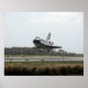 Space Shuttle Discovery approaches landing on Runway 15 of the Shuttle Landing Facility at NASA's Kennedy Space Centre, concluding the 13-day, 5.3-million mile journey of the STS-119 mission to the International Space Station. Onboard are NASA astronauts Lee Archambault, commander; Tony Antonelli, pilot; Steve Swanson, Richard Arnold, Joseph Acaba, John Phillips and Sandra Magnus, all mission specialists. The main landing gear touched down at 3:13:17 p.m. (EDT) on March 28, 2009. The nose gear touched down at 3:13:40 p.m. and wheels stop was at 3:14:45 p.m. During the mission, Discovery's crew delivered and installed the final pair of large power-generating solar array wings and the S6 truss segment to the starboard, or right, side of the station and accomplished important tasks to prepare the station for future upgrades and additions later this year.