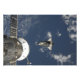 Space Shuttle Endeavour, a Russian spacecraft is visible in the foreground featured with aerial view.