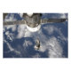 Space Shuttle Endeavour, a Russian spacecraft is visible in the foreground featured with aerial view.