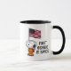 This Peanuts artwork celebrates the 50th Anniversary of the 1969 Apollo 10 orbit of the moon and the Apollo 11 moon landing. This design features Snoopy in his orange space suit flying the American flag.