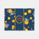 Fun space themed design for little boys in navy blue, red and yellow and featuring his name and monogram.