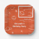 Cute orange and white paper plates for your kid's space themed  birthday party. The background represents an orange computer screen where all the elements in white colour appear, including the text for you to customise. You will find planets, screens, stars and lines.  Personalise it with your own message. Illustrated and designed by Patricia Alvarez.