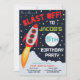 Invite all your friends to your fun Space themed party with these great party invitations with space background and a cool rocket design. Ideal for space parties,