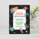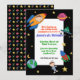 Outerspace, planets, rockets and astronauts. A perfect birthday invitation for any child who loves space travel. Invitation is easy to customise with your wording and font.