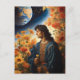 A young man ... you decide ... is sending love and light to planet earth. There are lots of lovely flowers symbolising love.