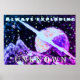 A Saturn-like alien planet, starry sky, rugged surface of its satellite and a lonely figure on a rock.