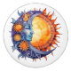 Faces of the sun, stars and moon in bright gold, orange and blue