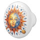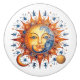 Faces of the sun, stars and moon in bright gold, orange and blue