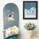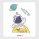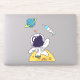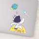 A decal with an illustration of a spaceman wearing a white astronaut suit floating above the moon. Off in the distance is a planet with rings and a rocket ship flying off into the sky looking for new worlds to explore.