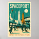 Step into a timeless vision of interstellar travel with this retro-futuristic spaceport poster. Featuring towering rockets, a bustling terminal, and travelers ready for cosmic adventures, this stylized illustration blends vintage sci-fi charm with modern imagination. With bold teal and orange tones and a dreamy lunar backdrop, it’s perfect for space lovers, futurists, and fans of nostalgic space-age design.