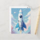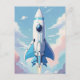 Spaceship flying in the sky postcard