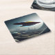 Spaceship over a Futuristic City Square Paper Coaster