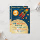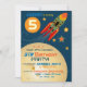 Vintage-look spaceship blasting into outer-space and planets birthday invitation card.
