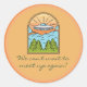 Spaceship UFO Space Visitors Meet Again sticker - A great drawing of a spaceship coming down to Earth and the greeting "We can't wait to meet up again." A tongue in cheek sentiment about being unable to see friends for a year AND having aliens come down to meet us. The sentiment can be changed to whatever you'd like or delete it altogether. Two rings around the outside of the sticker are the same colours as the gradation in the UFO design.
