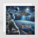 Ai illustration of an astronaut watching UFOs flying in space over the earth.