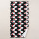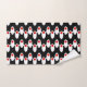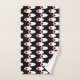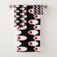 This towel set has a mid-century modern design of white ovals with red circles connected by white lines on a field of black. Want different colours? Message me.