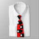 This necktie has a mid-century modern design of black ovals with white circles connected by white lines on a field of red. Want different colours? Message me.